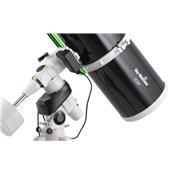 L'adaptation du tube optique s'effectue à l'aide d'une queue d'aronde femelle type Vixen. Un plateau porte accessoires assure une bonne rigidité de l'ensemble. La monture NEQ5 peut recevoir un viseur polaire (option #SW0124) dans l'axe polaire pour réaliser rapidement la mise en station. L'observateur visuel appréciera le système de pointage automatique GOTO SynScan (en option) délivré par l'intermédiaire d'une raquette de commande simple d'utilisation. En effet nul besoin de connaître la position des étoiles ou des astres lointains du ciel profond, le système Go-To de la monture NEQ5 se charge se déplacer l'instrument vers la cible que vous désirez observer.
